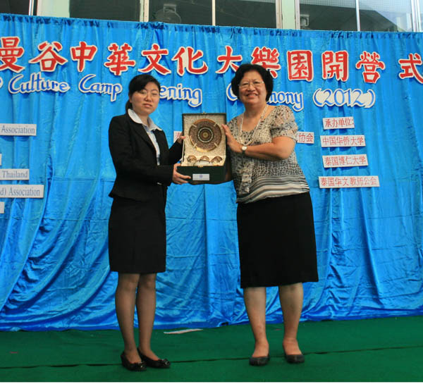 4月18日,由中国海外交流协会主办,中国华侨大学承办,泰国华文教师公会、泰国博仁大学、泰国培真学校和泰国培华公学协办的“2012中华文化大乐园——泰国曼谷营”在泰国曼谷培真中学举办开营式,泰国博仁大学校长顾问隆玛妮耶蔡女亲王亲自出席仪式并讲话。