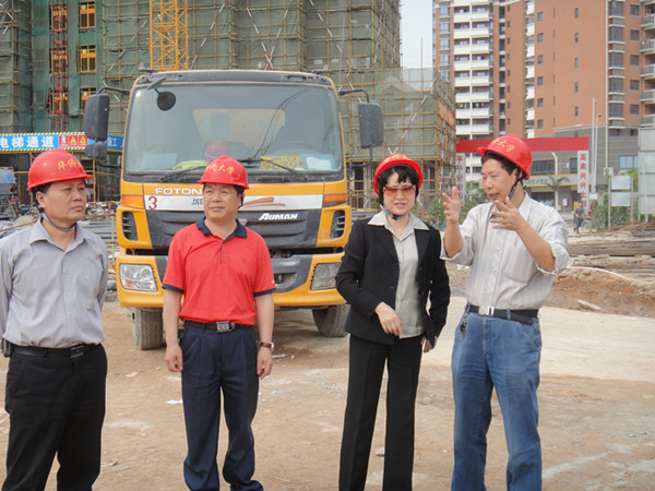 4月13日下午,校党委副书记朱琦环在实验室与设备管理处处长伍扬、厦门校区教职工住房建设指挥部副总指挥肖德彬、厦门校区教职工住房建设指挥部监察办公室主任黄建进等的陪同下前往滨水商品房建设工地,视察正在施工建设的教职工商品房。