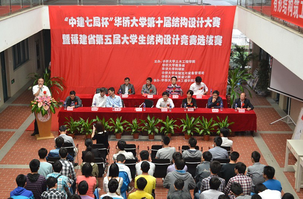 “有形结构筑工程师之路,无限创意圆工程师之梦”,4月15日上午,“中建七局杯”华侨大学第十届结构设计大赛暨福建省第五届大学生结构设计竞赛选拔赛在厦门校区综合教学楼C5区三楼开赛。此次比赛共有128支队伍报名参赛,提交作品120件。