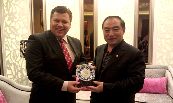 贾益民校长向Jason Miezis团长赠送纪念品(刘红光/摄)