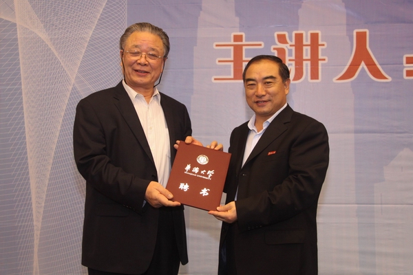 报告会由副校长张禹东主持。校长贾益民为保育钧颁发华侨大学兼职教授聘书,泉州市委常委、政法委书记许昆贞为保育钧颁发“华大讲堂”主讲嘉宾纪念牌。