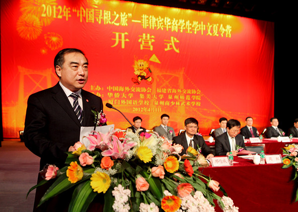 4月1日,2012年中国寻根之旅----菲律宾华裔学生学中文夏令营开营式在集美大学诚毅影剧院隆重举行。此次夏令营由中国海外交流协会、福建省海外交流协会主办,华侨大学、集美大学、泉州师范学院等学校联合承办。国务院侨办副主任许又声,华侨大学董事会副董事长、菲律宾航空公司董事长陈永栽博士,菲律宾商联总会理事长庄前进,亚洲啤酒中国投资有限公司总裁陈永灿,国务院侨办文化司副司长周虹,福建省侨办主任曾晓民,厦门市副市长康涛,福建省侨办副主任邓伦成,厦门市侨办主任黄娇灵,菲律宾华教中心副主席黄端铭等嘉宾以及近一千名菲律宾华裔师生出席开营式。
