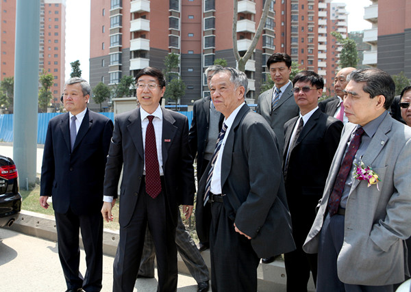 4月1日,我校董事会副董事长、菲律宾航空公司董事长陈永栽博士,菲律宾商联总会理事长庄前进,亚洲啤酒中国投资有限公司总裁陈永灿,国务院侨办文化司副司长周虹,福建省侨办副主任邓伦成等到我校视察华文教育培训中心——陈延奎大楼建设工程项目。