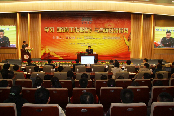 27日下午,著名经济学家、中央政治局集体学习主讲人、《政府工作报告》起草组成员、中国社科院经济研究所所长裴长洪做客“华大讲堂”第27讲,就“学习《政府工作报告》与当前经济形势”做了一场精彩的报告。