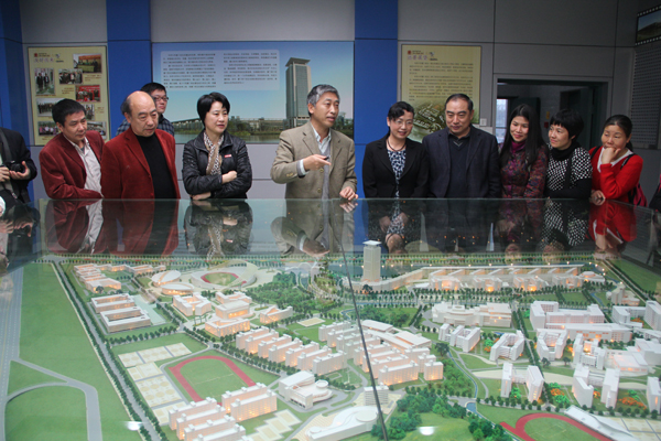 调研团在贾益民、朱琦环、刘塨等陪同下参观厦门校区模型图(卢春华 摄)
