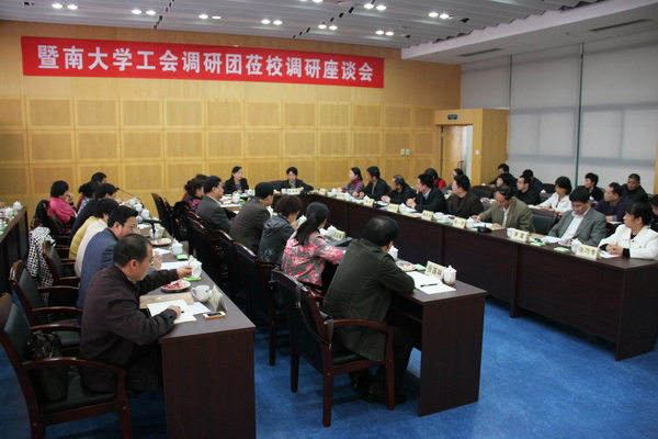 3月15日至17日,由暨南大学副校长、工会主席饶敏,工会常务副主席程炎明等组成的暨南大学工会调研团一行35人到我校考察访问。校长贾益民,党委副书记、工会主席朱琦环等热情接待调研团一行。
