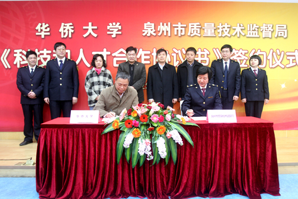 3月12日下午,华侨大学与泉州市质量技术监督局签署合作协议。根据协议,双方将本着“双向开放、优势互补、合作共赢”的原则,共同建立校局合作关系,加强“产、学、研”合作,在资源共享、科研合作、成果推广、人才交流、人才培养等领域开展合作。