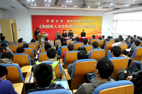 泉州市质量技术监督局计财科技科等部门负责人,华侨大学科研处等相关职能部门负责人,各学院教师、学生代表,共计100多人参加了签约仪式。