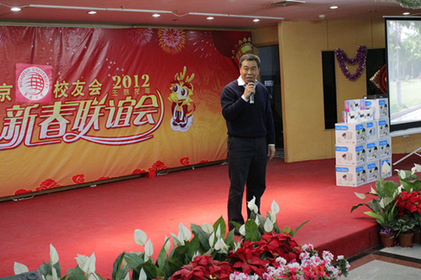 丘进在致辞中表示,校友是母校最好的名片,希望校友们多多沟通、交换信息,为母校争得光彩。他说,2012年是充满挑战的一年,校友们在京就业、工作不易,祝愿大家都能身体健康、家庭和睦、生活快乐。