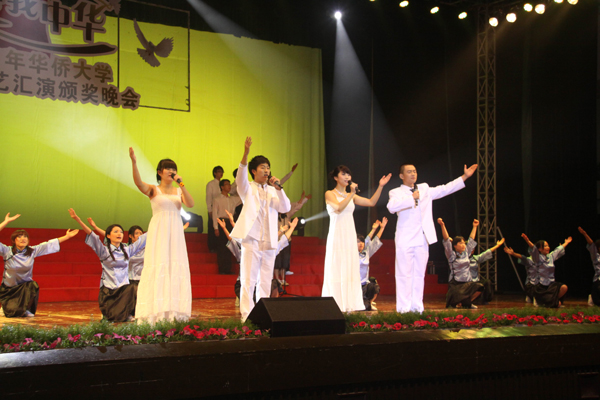 12月3日晚,由党委学工部主办、学生艺术团承办的华侨大学纪念“一二﹒九”学生爱国运动七十六周年暨“爱我中华”新生文艺汇演颁奖晚会在陈嘉庚纪念堂举行。校党委副书记、副校长关一凡,学生处处长陈国柱等出席并观看晚会。