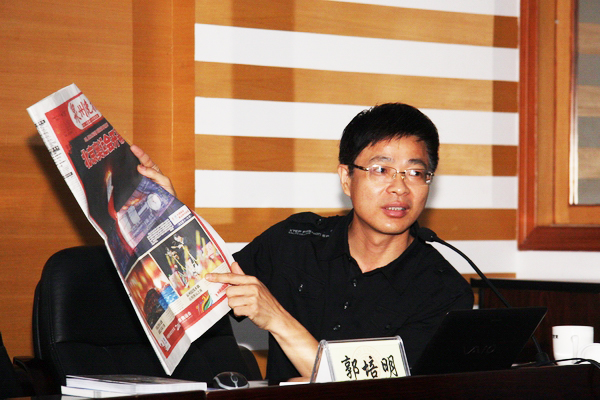 郭培明从报纸的危机、报业的机遇、报人的机会、报道的转机四个方面简要介绍了报业的现状和趋势,他并结合多年媒体管理经验,分析了新闻策划的重要性及新闻稿件的选择。郭培明表示,新闻稿件处理要善于从“宏观主题”上找“微观落点”,他同时提出了把握时机、抓住热点、平中见奇、旧闻新知等处理技巧。