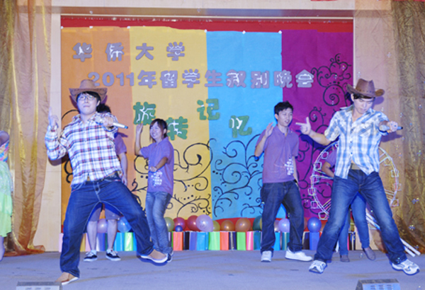 6月23日晚,华侨大学2011年“旋转记忆”境外生叙别晚会在祖杭楼明德堂举行。学生处、校友与公共关系处、招生处相关负责人,与2011届境外毕业生代表及20多位毕业生家长一同观看了晚会。
