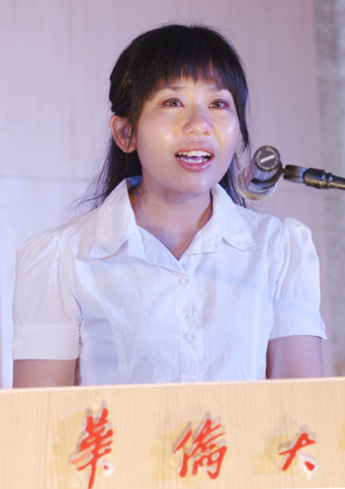 随后,马亚西亚学生家长代表陆月尔女士、马来西亚留学生代表徐宝云、留学生联络部部长周顺奇同学先后上台发表感言。