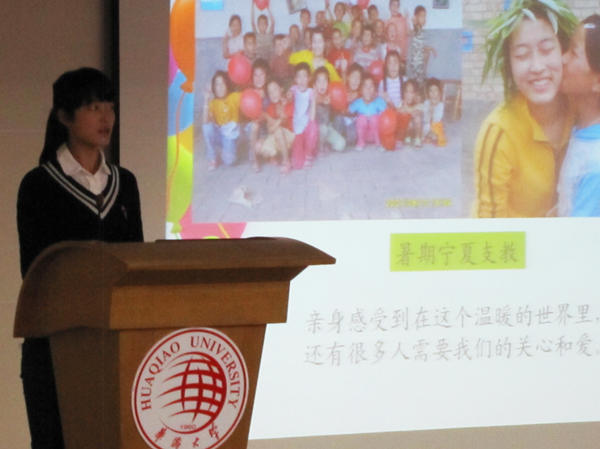 经过前期的网络投票及当天的现场答辩,文学院07级本科生孙祎妮、经济与金融学院09级研究生陈新镇、工商管理学院09级研究生易爱娣、华文学院07级本科生伍锬桐、信息科学与工程学院08级本科生杨雅星、机电学院09级研究生江晓玲、旅游学院07级本科生柴娅男、经济与金融学院08级本科生骆灵珊、机电学院07级本科生陈锋及化工学院08级本科王光亚十名同学最终获“华侨大学2010年十佳优秀学生标兵”荣誉称号。