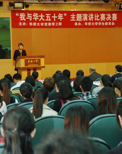 10 月 28 日晚,由华侨大学党委学工部主办、华侨大学学生委员会承办的“我与华大五十年”主题演讲比赛在陈嘉庚纪念堂四楼科学厅落下帷幕。