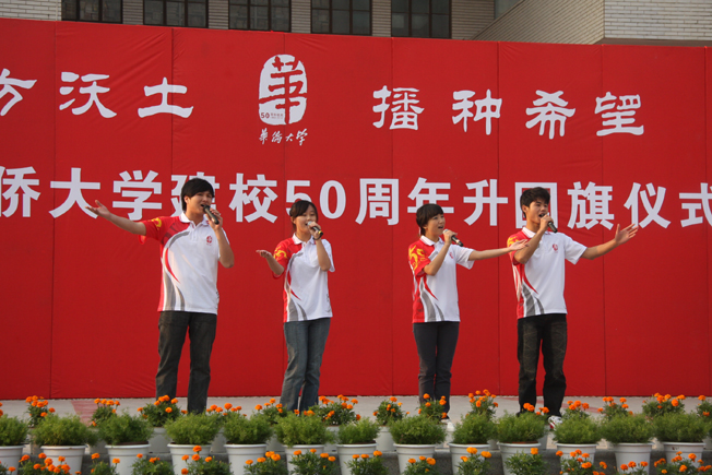 2010 年 11 月 1 日,是华侨大学建校五十周年纪念日。今日上午 7 时整,华侨大学在泉州校区承志广场、厦门校区行政研发大楼A区广场和华文学院南门广场同时举行升国旗仪式,隆重庆祝华侨大学建校五十周年。 校领导丘进、李冀闽、关一凡、朱琦环、吴季怀、徐西鹏、刘塨、张禹东、刘斌,校长助理彭霈、张云波、曾路及数千名师生出席升旗仪式。