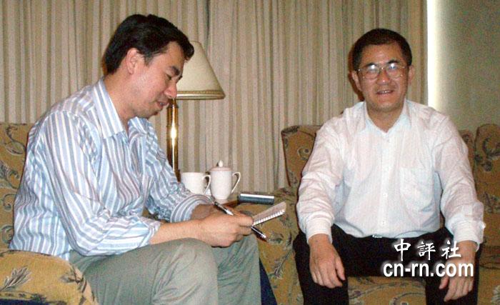 华侨大学校长丘进教授(右)在接受记者的采访。