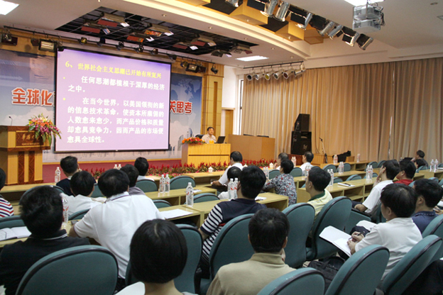 在题为“全球化背景下国际国内问题的相关思考”的报告中,李慎明研究员以丰富的事例、翔实的数据,图文并茂地分析了中国目前所面临的国际、国内机遇与挑战,并由此提出了自己的思考。