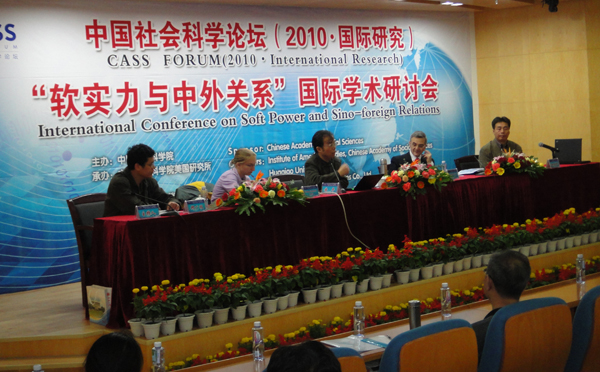“中国社会科学论坛(2010·国际研究)——软实力与中外关系”国际学术研讨会22日-23日在华侨大学厦门校区召开。23 日上午,中外专家继续围绕“软实力与中外关系”进行分组讨论。在王源兴国际会议中心 G-201 室,中国社会科学院文学所研究员赵京华、意大利《新闻报》亚太地区主任郗士、来自德国全球和区域问题研究中心的高亭亭、中国社会科学院美国研究所所长黄平,分别围绕主题:《冷战体制下日本国家软实力的展开及其问题 ―—战后日本的亚洲经援外交》、 《中国和他的邻国》 、 《人民共和国软实力建设经验》等阐述己见。