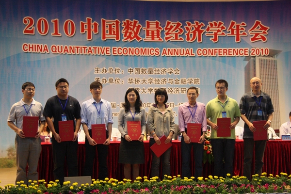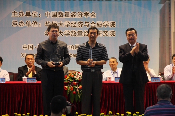 2010 年中国数量经济学年会优秀论文评选,17 日上午在王源兴国际会议中心举行的闭幕式上揭晓:华大陈燕武副教授、吴承业教授的论文《澳门房价与经济增长关系研究》荣获优秀论文二等奖。据悉,本届年会提交论文 307 篇,从中共评出 9 个一等奖、 19 个二等奖、 20 个三等奖。获选的优秀论文,将编辑出版《 21 世纪数量经济学(第 11 卷)》。 同时,鉴于华侨大学对中国数量经济学发展的重要贡献,本届年会还做出了表彰决定:授予华侨大学 “突出贡献奖”。