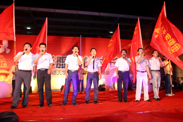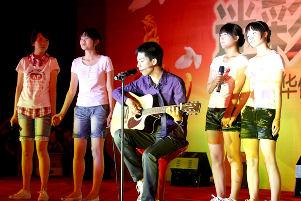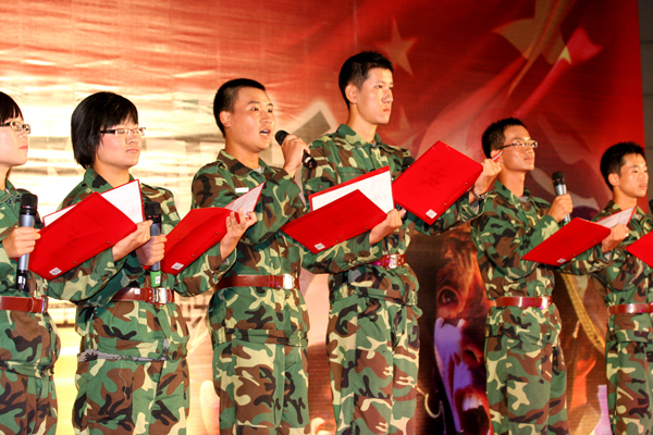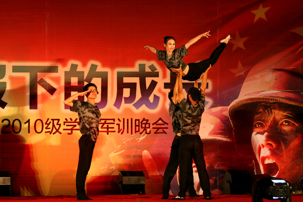 华侨大学厦门校区 2010级新生军训晚会昨晚在综合教学楼A区广场举行。校党委副书记、副校长关一凡,军训团团长陈永平到场观看演出。