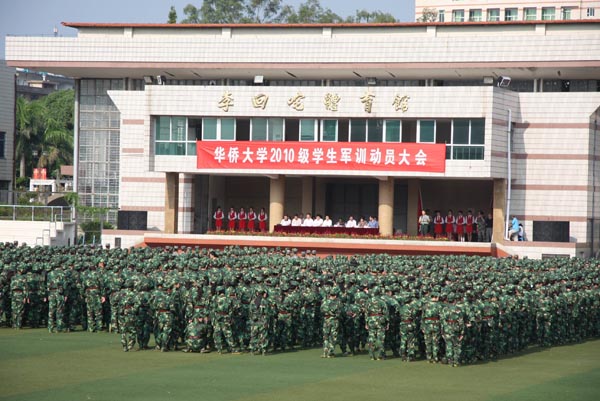 据悉,本次军训在我校泉州校区、厦门校区、华文学院三个校园同时展开,为期 12 天,参训学生共 4976 人,其中泉州校区参训的有来自 11 个学院的 2010 级本科、高职学生和新辅导员老师共 2292 人。在境内生军训期间,境外学生除参加学校组织的专题入学教育讲座外,还将进行入学教育社会实践活动。