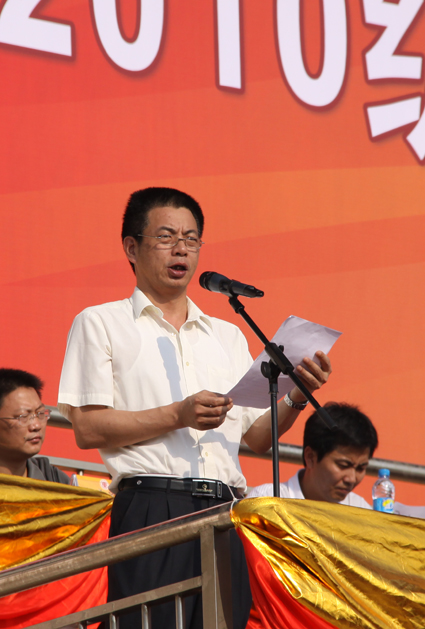 承训军官林阗、机电学院 2010 级新生蒋皓宇分别代表教官和新生发言,表示将克服困难,出色完成各项训练任务。
