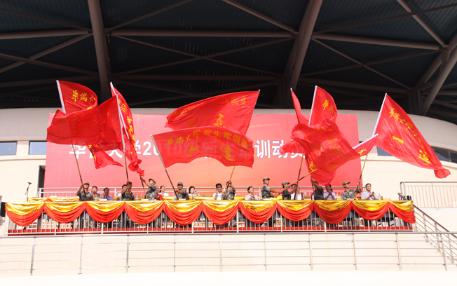 中国人民解放军 73141 部队政治部副主任王志明代表部队全体官兵讲话,为受训新生鼓舞士气。他强调,组织大学生军训,不仅为了彻落实《国防法》,更是培养国防后备力量、推行素质教育的有效手段,是培养社会主义事业合格接班人的具体举措。他希望受训同学,认真学习,刻苦训练;事事争第一,样样夺红旗,以上好军训第一课,迎接丰富多彩的大学生活,并以军训这个平台展示华大学子的风采。