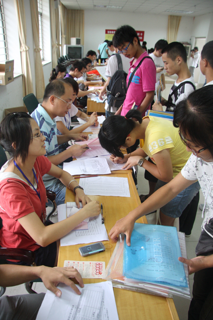 今天是华侨大学2010 级新生报到的日子,全校迎新工作早上 7 点多即展开,记者看到,学校道路通畅,各学院迎新点新生报到秩序井然。