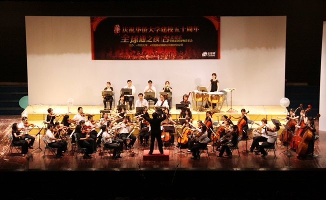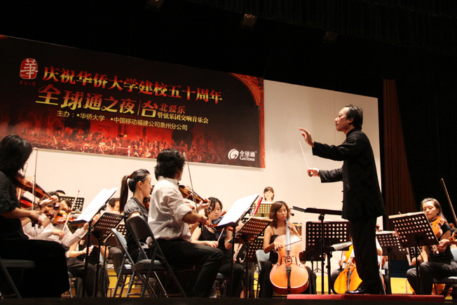 昨晚,随着美妙而又激昂的《费加洛婚礼序曲》响起,由华侨大学与中国移动福建公司泉州分公司联合主办的台北爱乐管弦乐团交响音乐会在陈嘉庚纪念堂观众厅拉开帷幕,为庆祝华侨大学建校五十周年送上了一份美好的祝福。校领导丘进、朱琦环等与三千多名师生一同欣赏了音乐会。