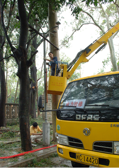 台风登陆后,在学校党委和行政领导的紧急部署下,后勤系统及时启动自然灾害防御工作应急预案,凌晨 4 时 30 分,后勤党政主要负责人群发短信安排抗灾工作。 6 时,后勤各负责人全部到位,对学校的受灾情况进行全面巡查、评估,立即启动应急措施,组织力量进行灾后抢险和抢修工作。