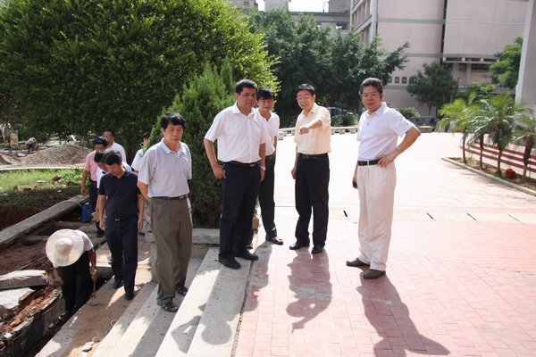 为迎接 50 周年校庆,今年暑假,我校校园内多项建筑进行了维修改造。3 日上午,校党委书记李冀闽、副校长刘斌率相关部处负责人,走访了我校部分工程施工点,对工程施工及安全情况进行视察。