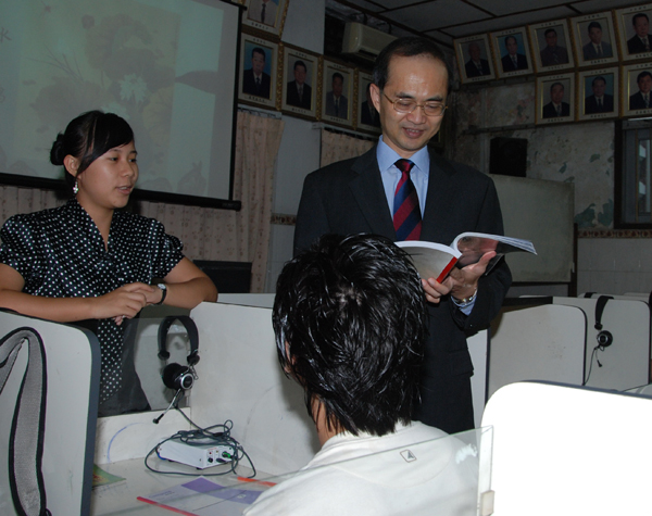 随后,叶大波大使视察了福星孔子课堂的长城汉语教室,关心、询问了教学情况并对福星孔子课堂的汉语教学工作给予了高度的评价。叶大使指出,福星孔子课堂的发展速度很快,学生人数众多,是仰光华校的典范,但教学设备还较为缺乏、办公设备相对陈旧。为此,叶大使代表中国驻缅甸使领馆赠送给福星孔子课堂一批包括空调、打印机、传真机和电视机在内的办公设备。