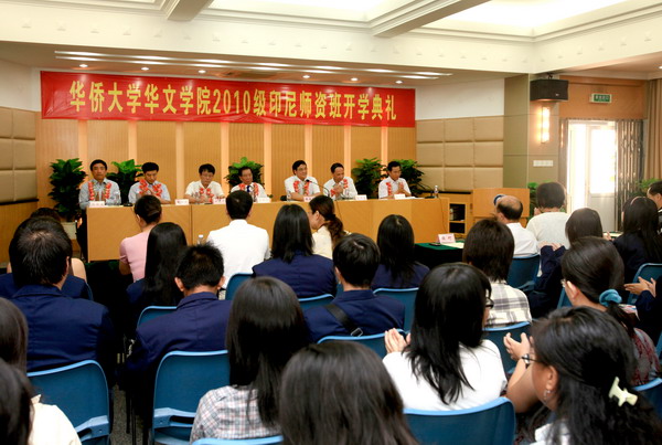 据了解,华侨大学华文学院自 2003 年起与印尼东爪哇华文教育统筹机构、印尼泗水教育厅、印尼苏北崇文教育基金会等华文教育机构合作,实施华文教育奖学金项目,招收有志于从事华文教育的华裔青年来华文学院学习,完成本科学历教育。该项目现已实施八年,历届学员在校学习勤奋,并且多才多艺。他们表演的经典节目《鼓韵》、《莎曼》曾获得全国大学生文艺展演一等奖的好成绩。师资班目前已有四届毕业生,这些同学毕业后返回印尼发挥了巨大的作用,已经成为印尼华文教育的中坚力量。