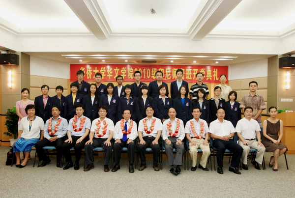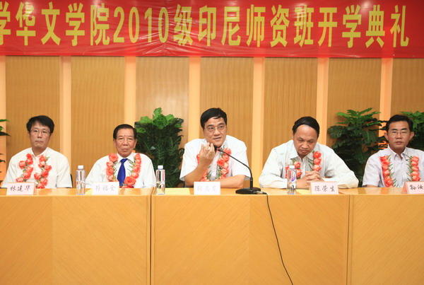 8 月 31 日上午,华侨大学2010级印尼师资班开学典礼在华文学院学术报告厅举行。印尼东爪哇华文教育统筹机构主席符福金,福建省侨办文化教育宣传处处长陈荣生、副处长林建华,华侨大学副校长张禹东,华文学院领导孙汝建、赵明光、陈旋波、张灯、林祁以及师生代表等出席了开学典礼,开学式由院长孙汝建主持。