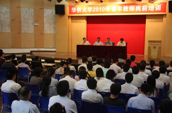 8月12日上午,华侨大学2010年青年教师岗前培训班在洪祖杭大楼明德堂举行开班仪式。校长丘进、副校长吴季怀、校长助理彭霈、人事处处长王秀勇等出席开班仪式。丘进代表学校热情欢迎新教师加盟华侨大学,希望他们在更高的层次上当好教师,成为华大发展的生力军。