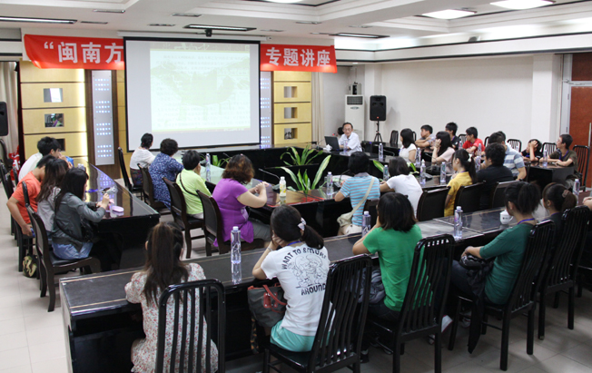 在李克砌纪念楼五层会议室,营员们听取了华侨大学文学院院长王建设教授作的题为“闽南方言与文化漫谈”专题讲座。王教授从闽南方言的形成和主要特点、什么是闽南文化、闽南文化的主要特点、闽南方言与闽南文化的关系等方面进行详细而生动地阐述,使营员们受益匪浅。