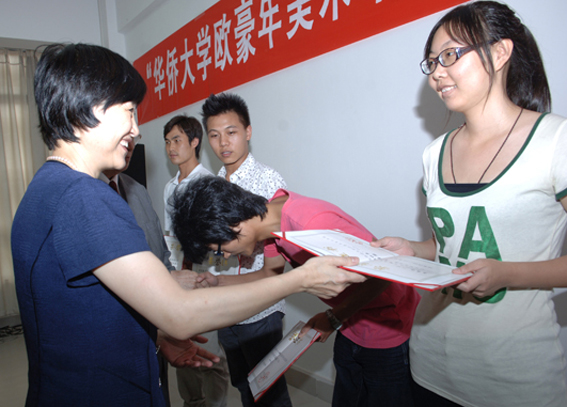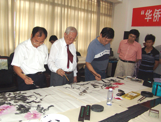 时值华侨大学建校五十周年,欧豪年教授、杜祖贻教授、陈立德副主席、王来文副主席、郭宁院长、孙德明院长挥毫泼墨,现场共同创作一幅《群芳共谱图》,并将作品赠与华侨大学,预祝华大在今后的办学过程中跨越新的高度,谱写新的篇章。