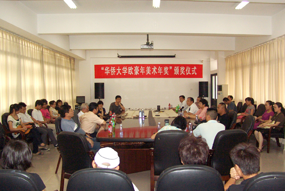 会上,美术学院院长孙德明教授代表美术学院向各位嘉宾的到来表示欢迎,并对杜祖贻教授捐资设立华侨大学欧豪年美术年奖表示感谢。美术学院吕少蓬书记简要介绍了美术学院第九届艺术节学生参与及获奖情况。