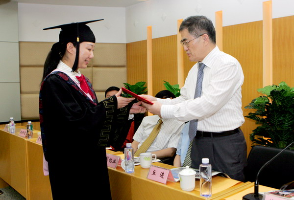 丘进校长为毕业生颁发毕业证书