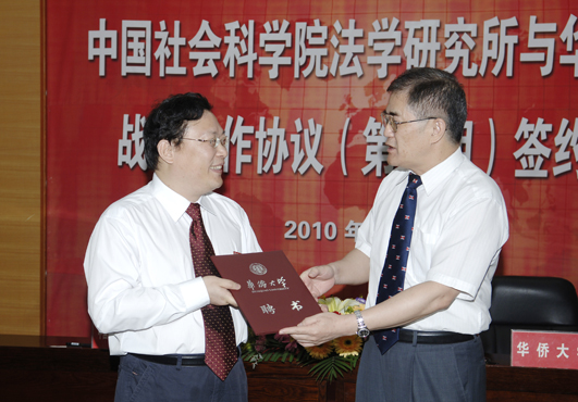 在三年良好战略合作的基础上,华侨大学今起将与国家级法学研究机构——中国社会科学院法学研究所实施第二期所、校战略合作,依托法学所资源优势,进一步推进华侨大学法学建设。