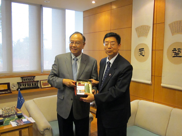李冀闽书记拜会中原大学程万里校长(左),双方互赠纪念品