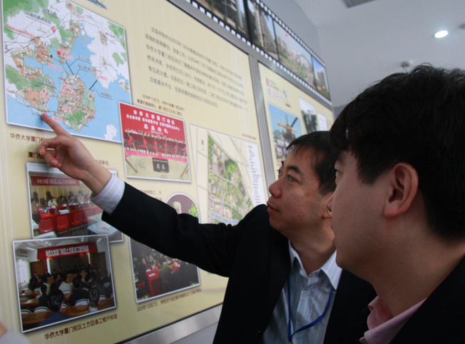 留学博士一行 50 人参观了厦门校区建设规划模型,观看了厦门校区建设图片展,游览了厦门校区校园,并在相对应学院负责人带领下,深入学院参观实验室,考察办公科研条件,洽谈对接合作。