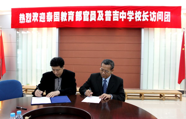泰国教育部基础教育委员会官员 Uthaiwan Chalermchai 女士及普吉中学副校长 Pornsak Jindapol 一行 6 人昨日访问我校华文学院。华文学院党总支书记赵明光、副院长陈旋波在 1 号楼会议室会见了访问团一行,双方进一步交流和探讨了合作设立普吉中学孔子课堂的相关事宜,并签署合作备忘录,由此标志华文学院与泰国普吉中学孔子课堂合作项目正式启动。