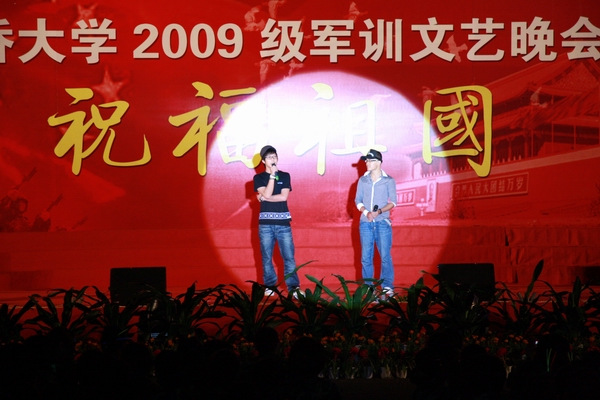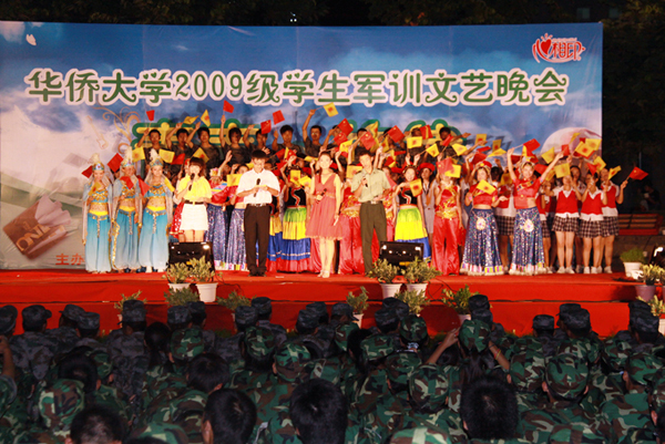 华侨大学 2009 级新生军训晚会 19 日晚分别在泉州校区北区 7 号楼前篮球场和厦门校区校大门内广场举行。