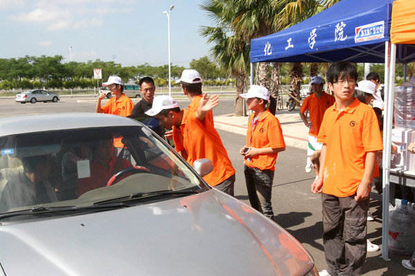 厦门校区青年志愿者为新生家长做引导服务(张彬 摄)