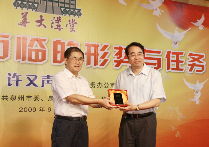 泉州是著名侨乡,华侨大学是知名华侨高等学府。为更好地开展侨务工作,7日下午,由泉州市委市政府与华侨大学联合主办的高端学术文化讲坛“华大讲堂”,特别邀请国务院侨务办公室副主任许又声为侨乡和侨校的干部主讲“侨务工作面临的形势和任务”。