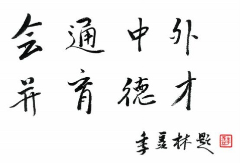 2000年华侨大学40周年校庆前,学校请季羡林先生题写校训,季老题写了“会通中外,并育德才”。“会通中外”主要侧重于表达治学方法,意即会合中外文化而变通或贯通之,也即做学问不应拘泥于中国的学问而昧于外邦,也不应言必称英美而数典忘祖,而应重在融会贯通,有所创新,标示师生对真理的追求;“并育德才”则侧重于阐明办学方针,意指育德与育才、境内生与境外生不可偏废,应当并重齐抓,使其互相促进,标示师生对价值的追求。两者的结合,体现了华侨大学对真理追求和价值追求的统一。校训高度概括了华侨大学的办学宗旨,成为学校的办学理念和师生的共同追求。