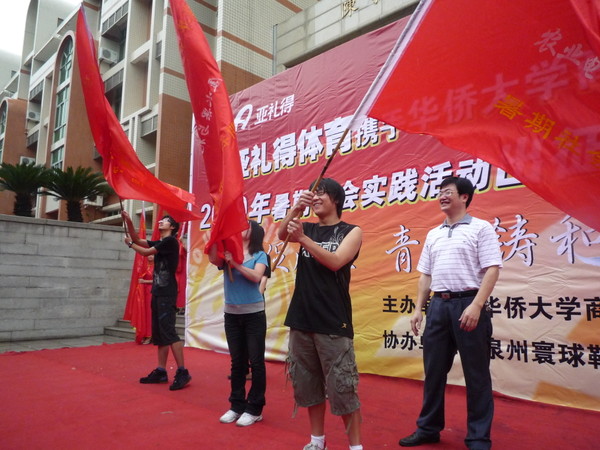 7 月 3 日,商学院 2009 年暑期社会实践出征仪式在陈守仁经济管理大楼前举行。