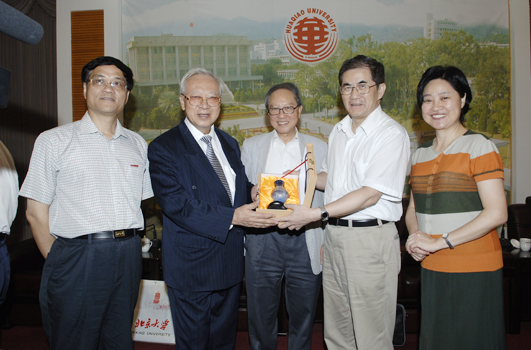 丘进校长昨日下午在陈嘉庚纪念堂二楼接待室会见了来访的我校校董、香港中文大学教授杜祖贻先生,以及台湾中国文化大学教授、岭南画派大师欧豪年,我校客座教授、中国民族博物馆特聘专家魏维贤博士和新加坡南洋理工大学国立教育学院亚洲语言文化学部中文系梁荣基教授等客人。